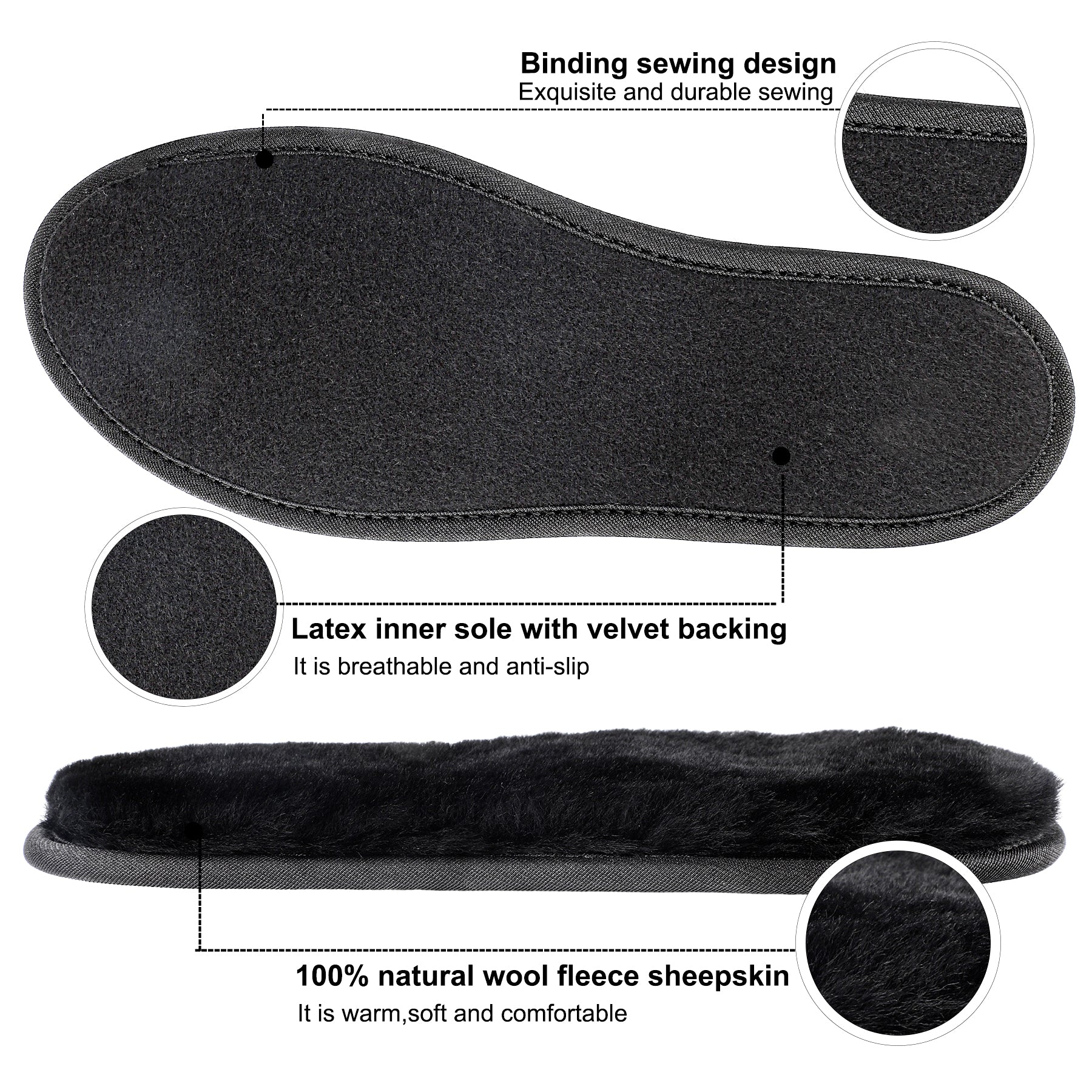 riemot Sheepskin Insoles for Men Women and Kids, Black Wide, Super Thick Premium Lambswool Insoles for Wellies Slippers Boots