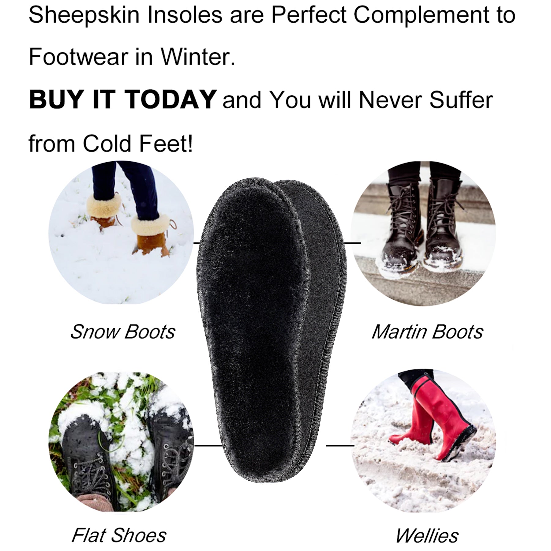 WINTER INSOLES: Durable winter shoe insoles that are fluffy and thermal.